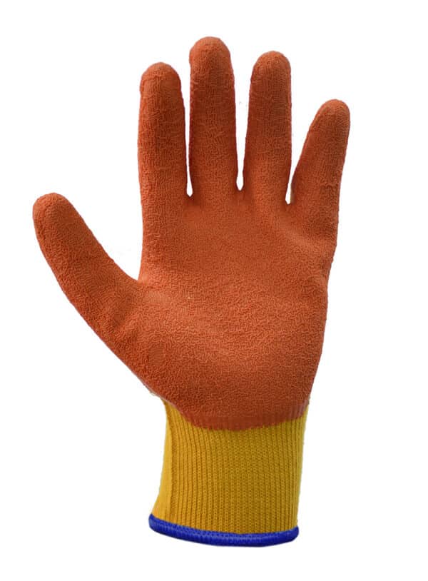 Guante tejido G10 amarillo construido con hilo poliéster sin costuras internas.