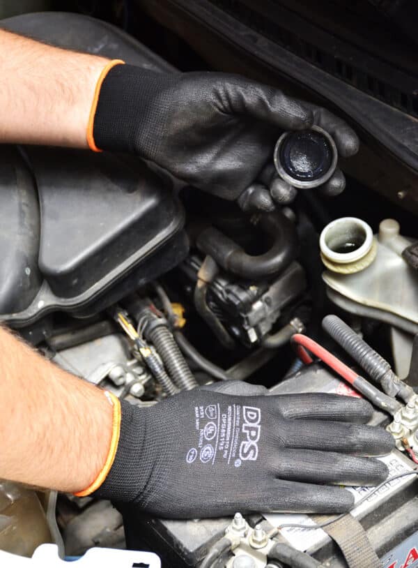 Guante tejido con hilo poliéster.